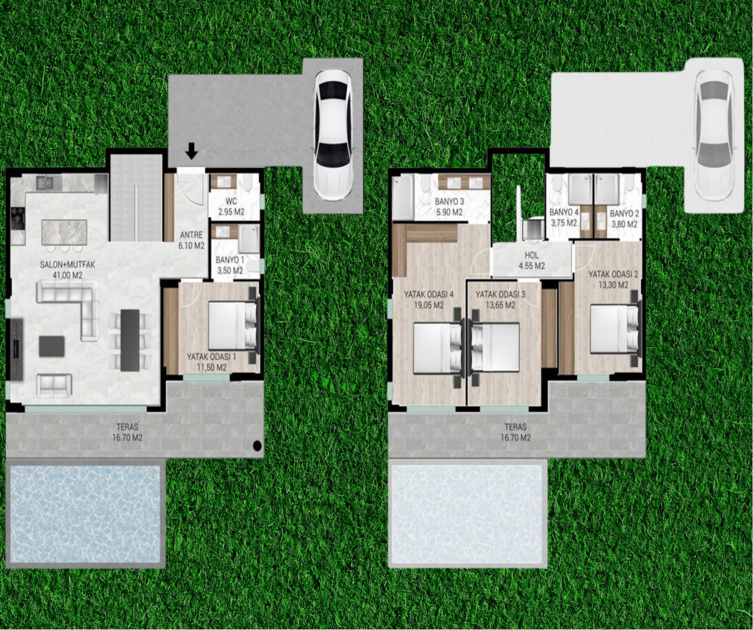 créent un environnement de vie calme. Dans chacune des villas du projet, les détails conçus à partir de matériaux de première classe de marques distinguées ont été réalisés avec une finition de la plus haute qualité. Il est également équipé d’un système central de climatisation VRF pour assurer votre résidence confortable pendant 12 mois. Le fait que chaque villa dispose d’un parking privé et d’une piscine privée de 40 mètres carrés rend votre vie encore meilleure ça rend ça agréable